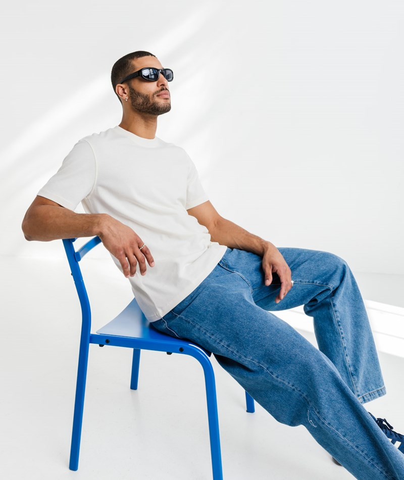 • Cremeweißes T-Shirt mit geripptem Rundhalsausschnitt