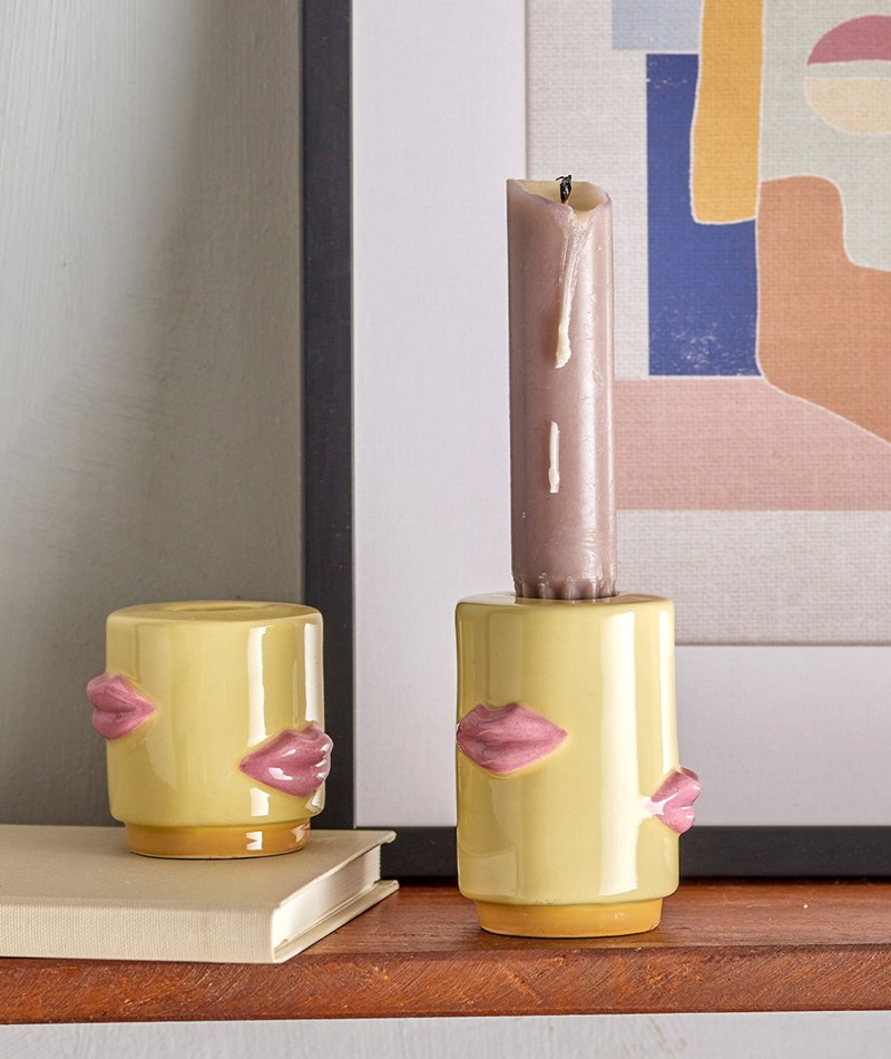 • Set aus zwei Kerzenständern in Gelb