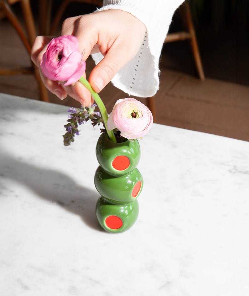 • Tolles Design von drei großen, übereinandergestapelten Oliven