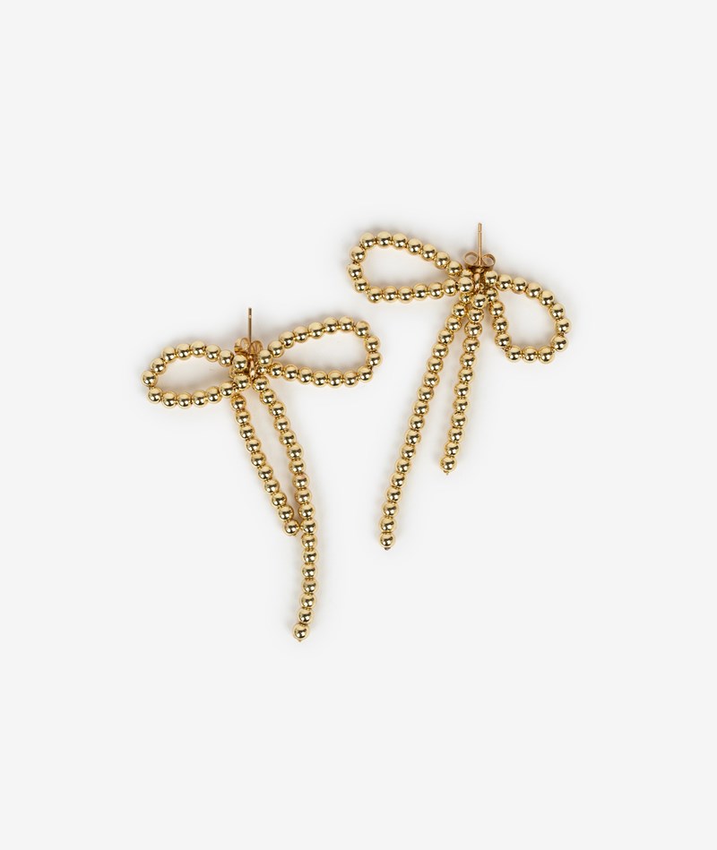 • Hängendes Schleifen-Design aus goldenen Perlen