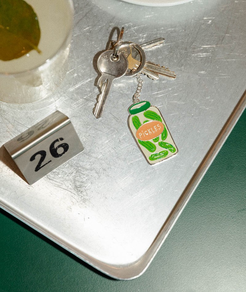 • Schlüsselanhänger in Gurkenglasform