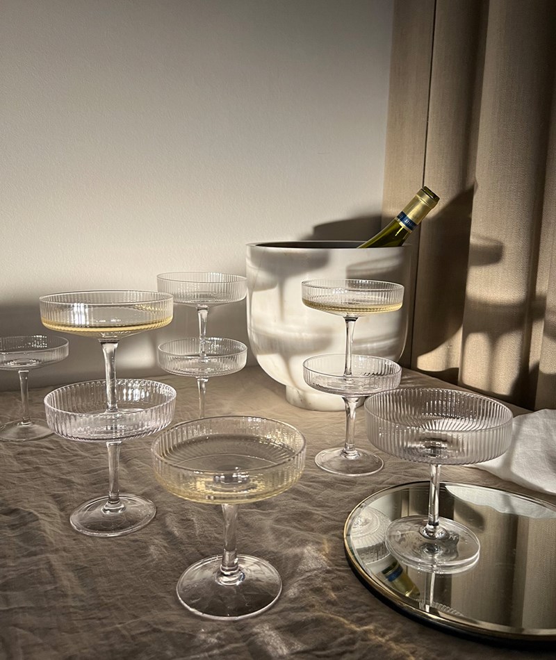 Die Champagnerschalen sind von Mund geblasen, wodurch leichte Abweichungen entstehen können, die aus jedem Stück ein Unikat machen.