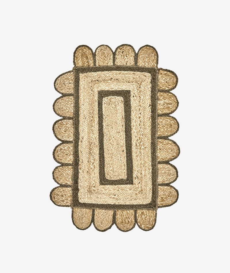 • Handgefertigter Teppich aus einem Jute-Polyester-Mix