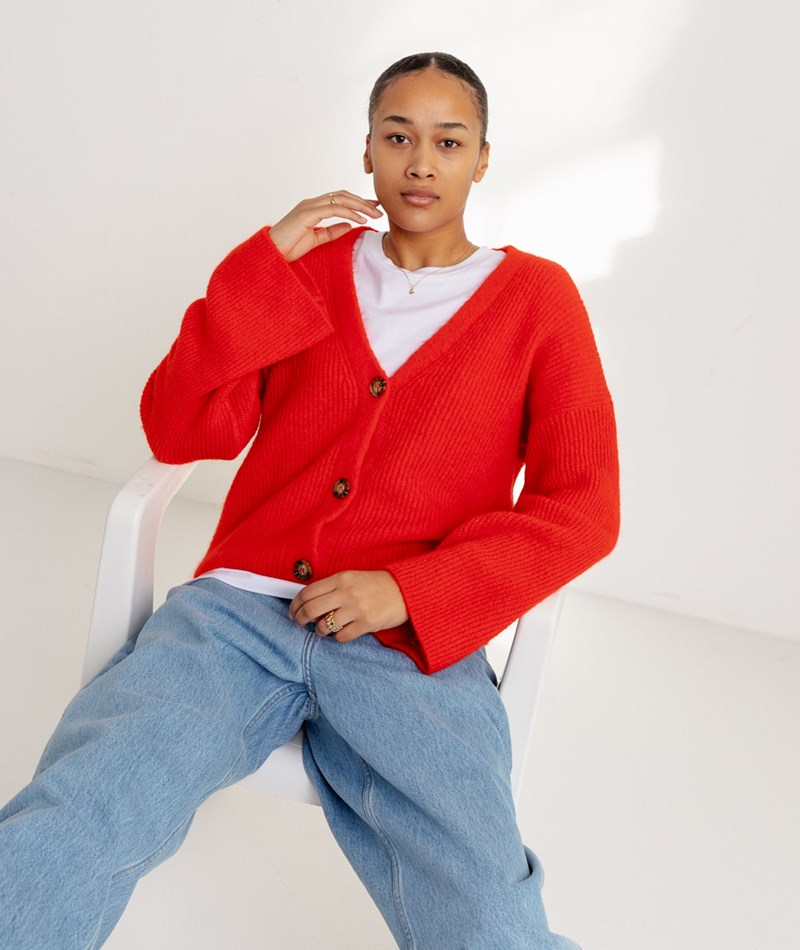 • Gerippter Strickcardigan in Rot