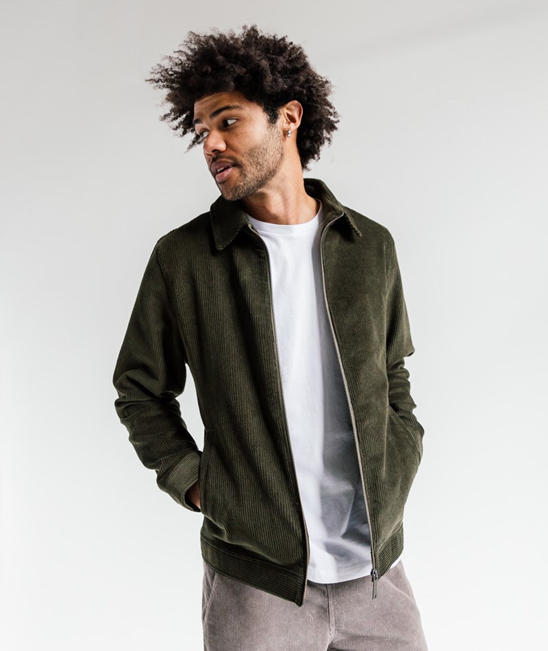 • Übergangsjacke aus dunkelgrünem Cord