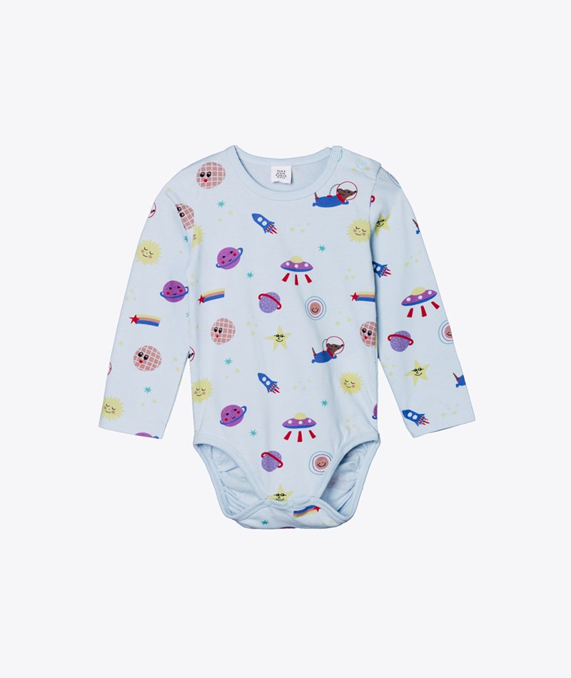 • Süßer All-Over-Print mit farbenfrohen Weltall-Motiven