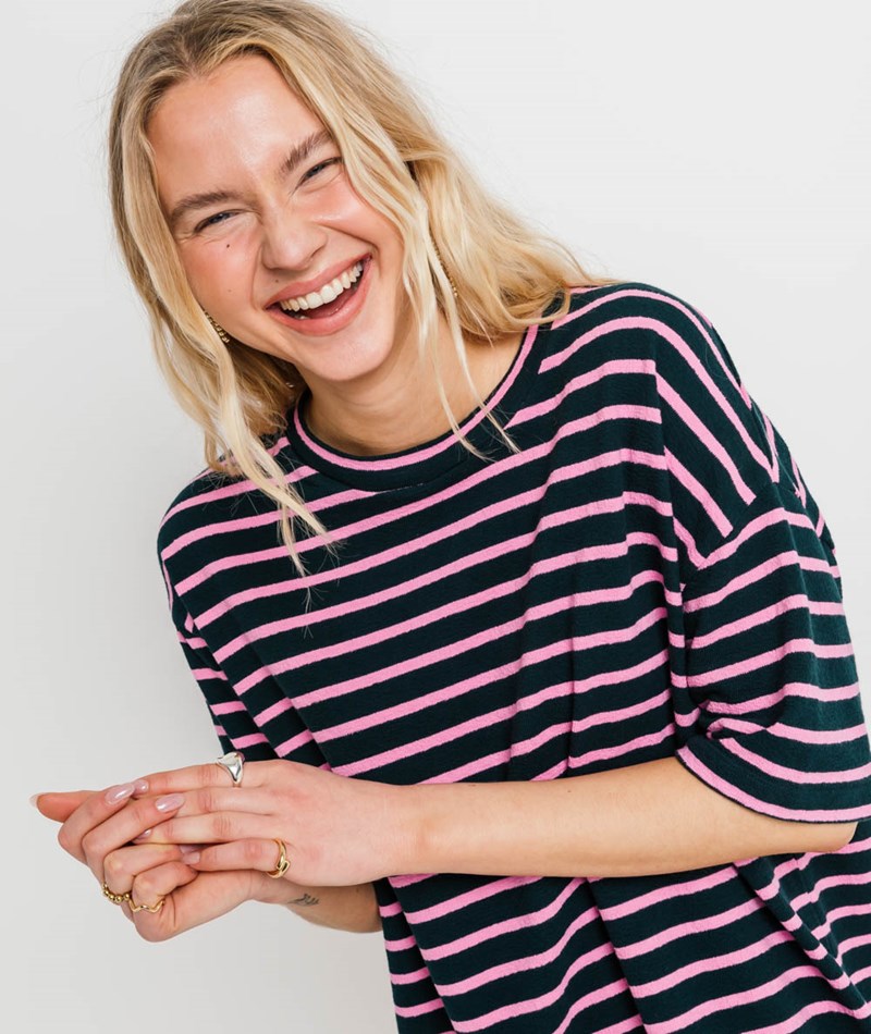 • Getsreiftes T-Shirt-Kleid in Dunkelgrün und Rosa