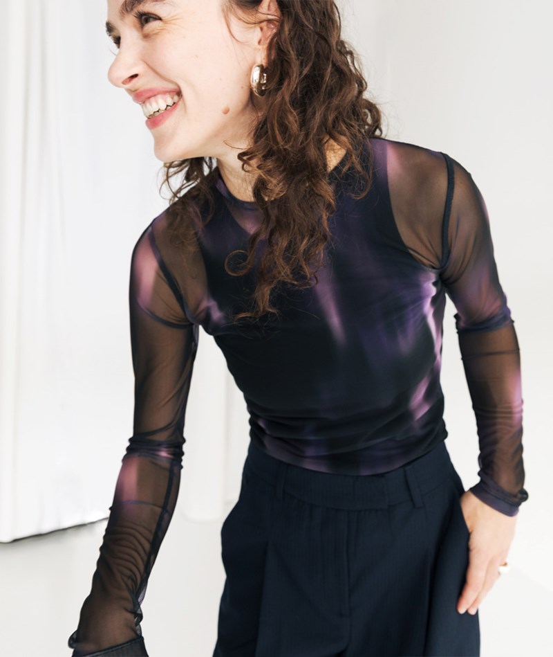 Das Longsleeve ist durchgängig transparent und hier mit einem seperaten Top darunter gestylt.