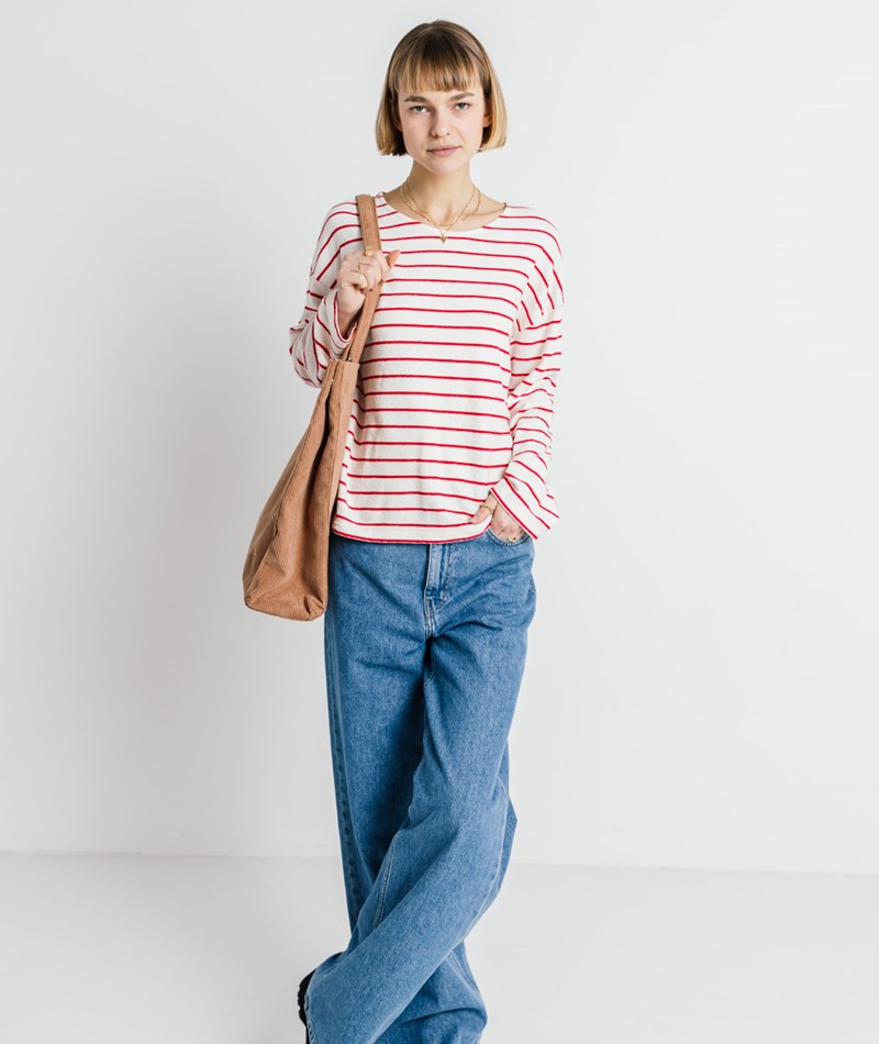 KAUF DICH GLÜCKLICH Longsleeve Weiß und Rot gestreift