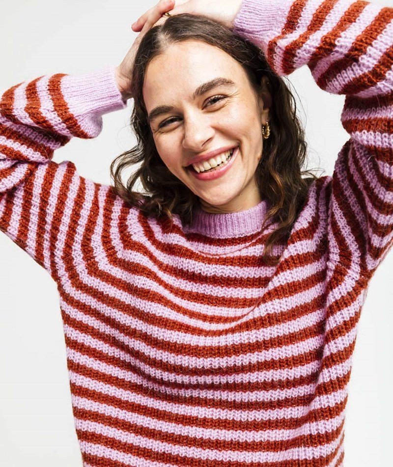• Gestreifter Strickpullover in Rosa und Bordeauxrot