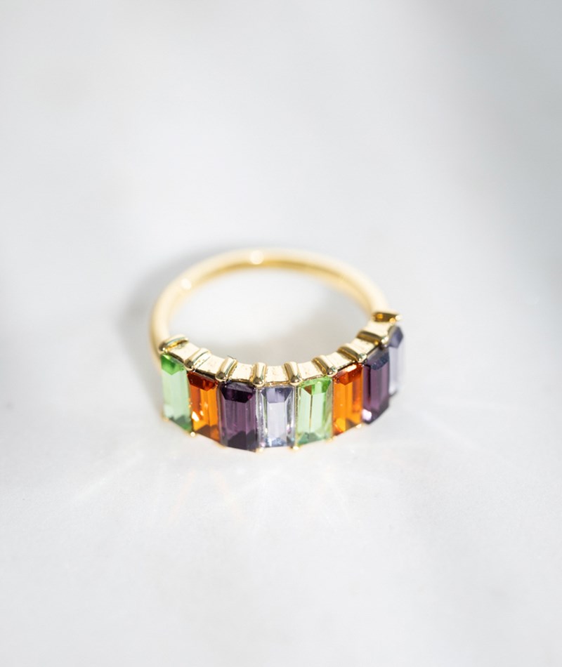 • Goldener Ring mit bunten Steinchen