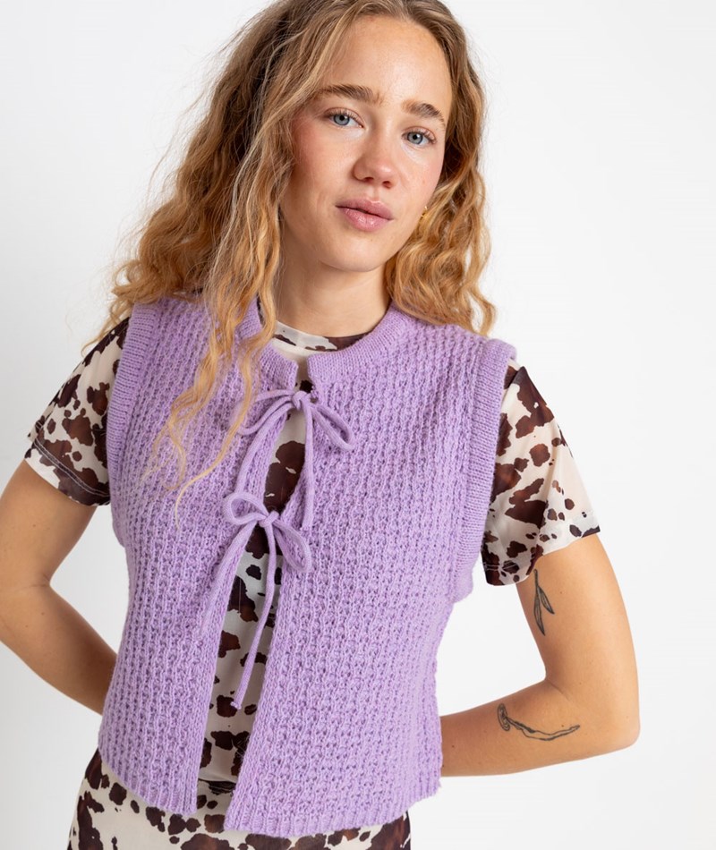 • Süße Strickweste in einem hellen Lilaton