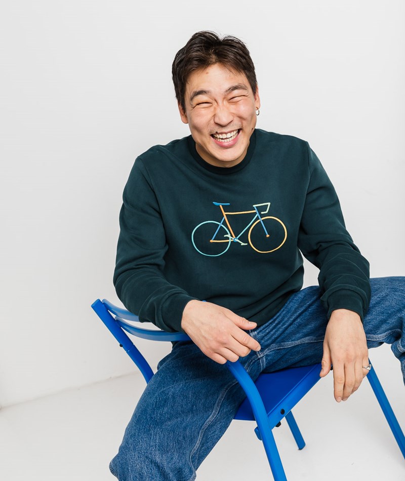 • Bunte Fahrrad-Stickerei auf der Brust
