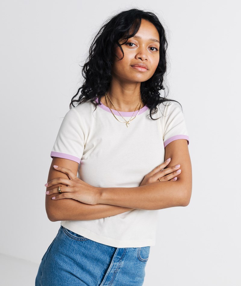 KAUF DICH GLÜCKLICH T-Shirt Creme/Rosa aus Bio-Baumwolle