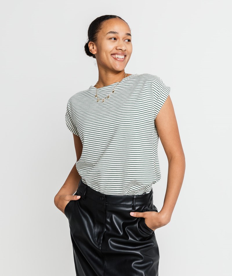 KAUF DICH GLÜCKLICH T-Shirt Creme und Grün gestreift