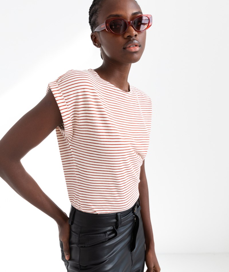 • T-Shirt mit Streifenmuster in Weiß und Rot