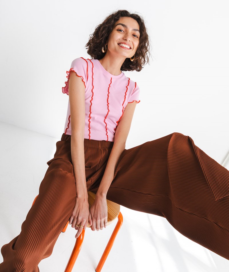 • Rosanes T-Shirt mit gewellten Detailnähten in Rot