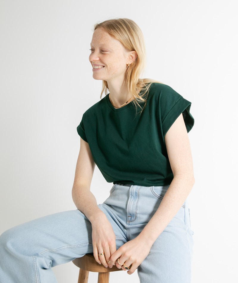 KAUF DICH GLÜCKLICH T-Shirt mit gekrempelten Ärmeln Piniengrün aus Bio-Baumwolle
