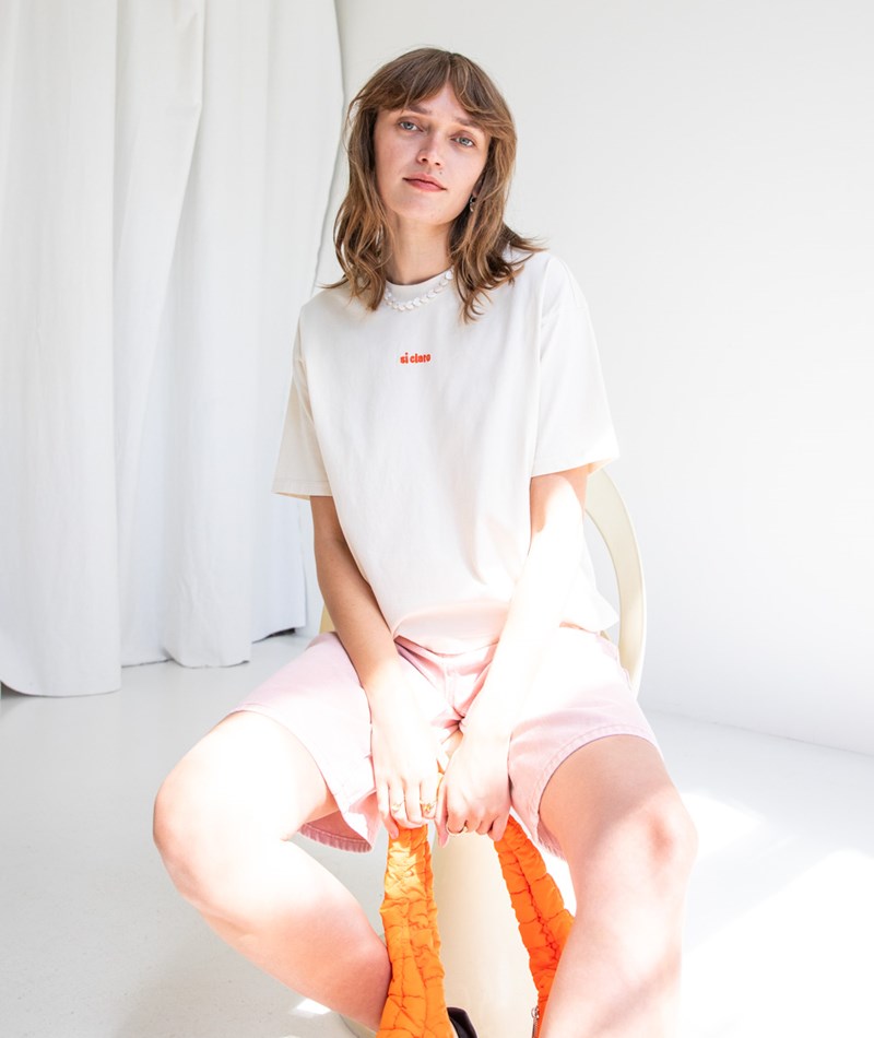 • Lockeres T-Shirt in Cremeweiß