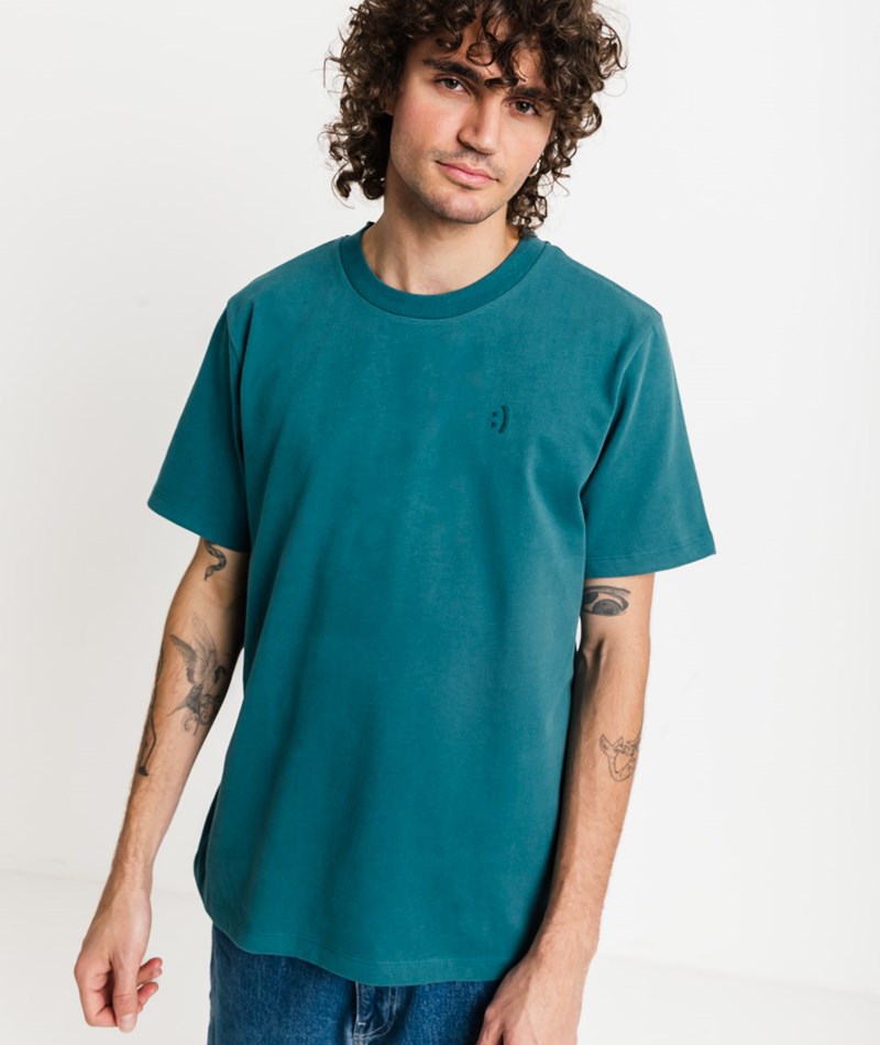 • Klassisches T-Shirt in einem Blau-Grünton