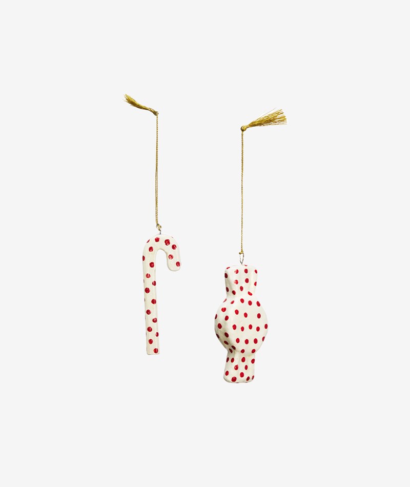 • 2er-Set Christbaumdeko in Weiß mit roten Punkten