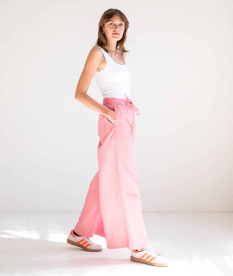 • Locker geschnittene Stoffhose in einem hellen Rot