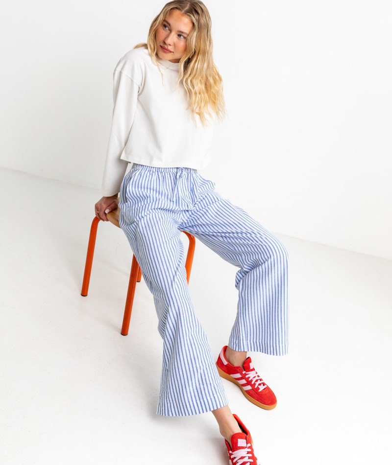 • Gestreifte Leinenhose in Hellblau und Weiß