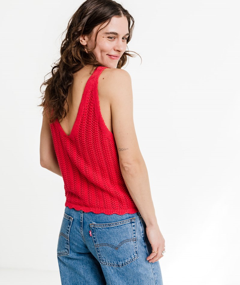 • Top mit grobmaschigem Rippstrickmuster in Rot