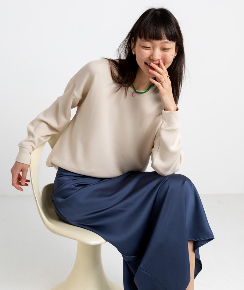 • Leicht oversize geschnittene Ärmel mit gerippten Ärmelbündchen