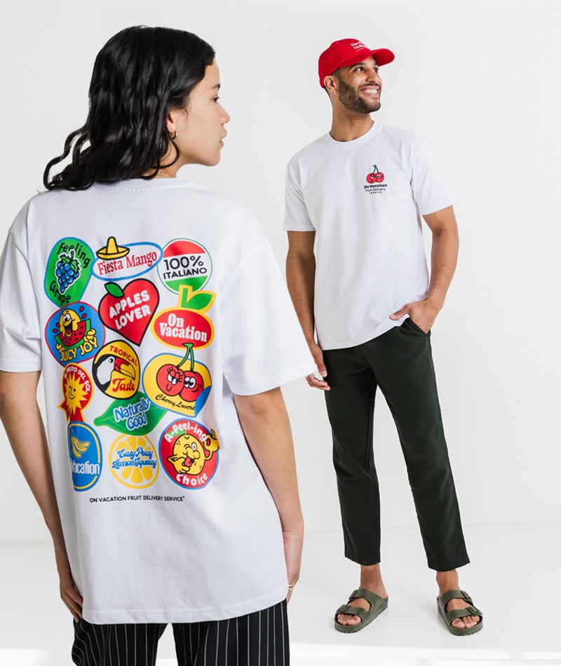 • ON VACATION Fruit Stickers T-Shirt Weiß