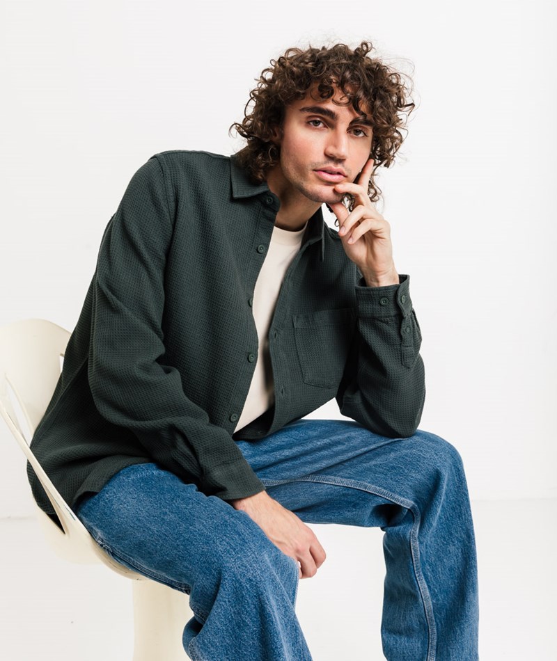 • Dunkelgrünes Hemd aus Bio-Baumwolle