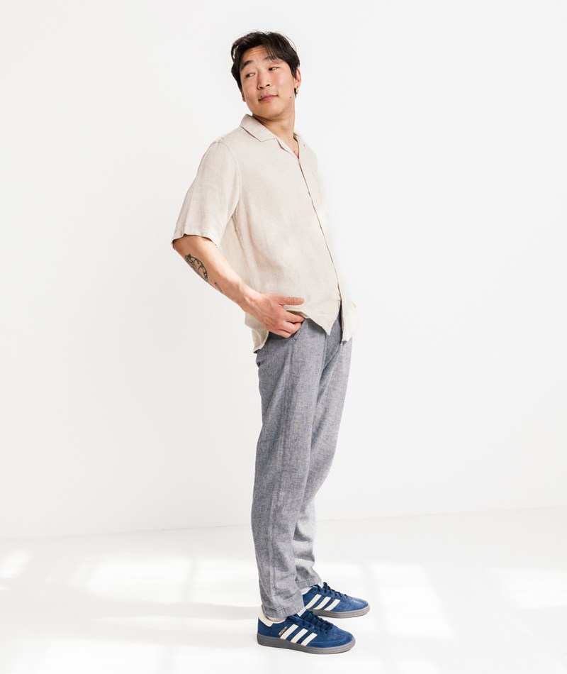MATERIAL: 54 % Baumwolle (Bio), 45 % Leinen, 1 % Elasthan