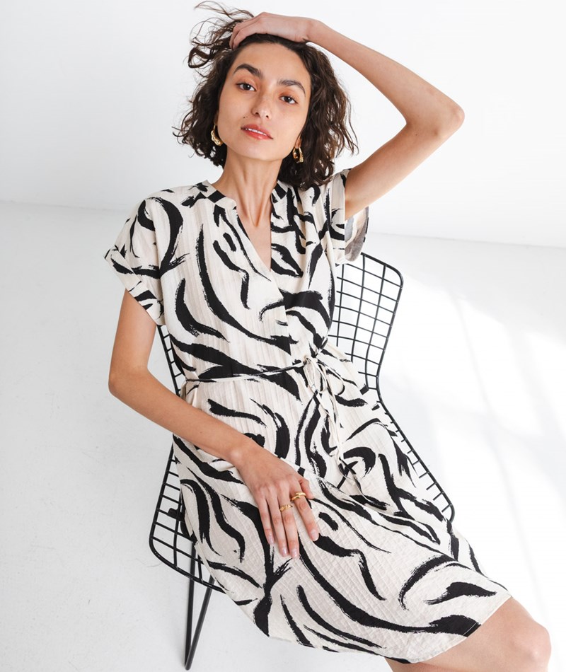 • Gemustertes Blusenkleid in Schwarz und Beige