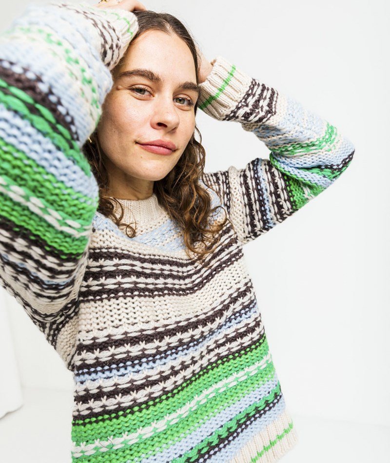 • Weicher Strickpullovermit mehrfarbigem Muster